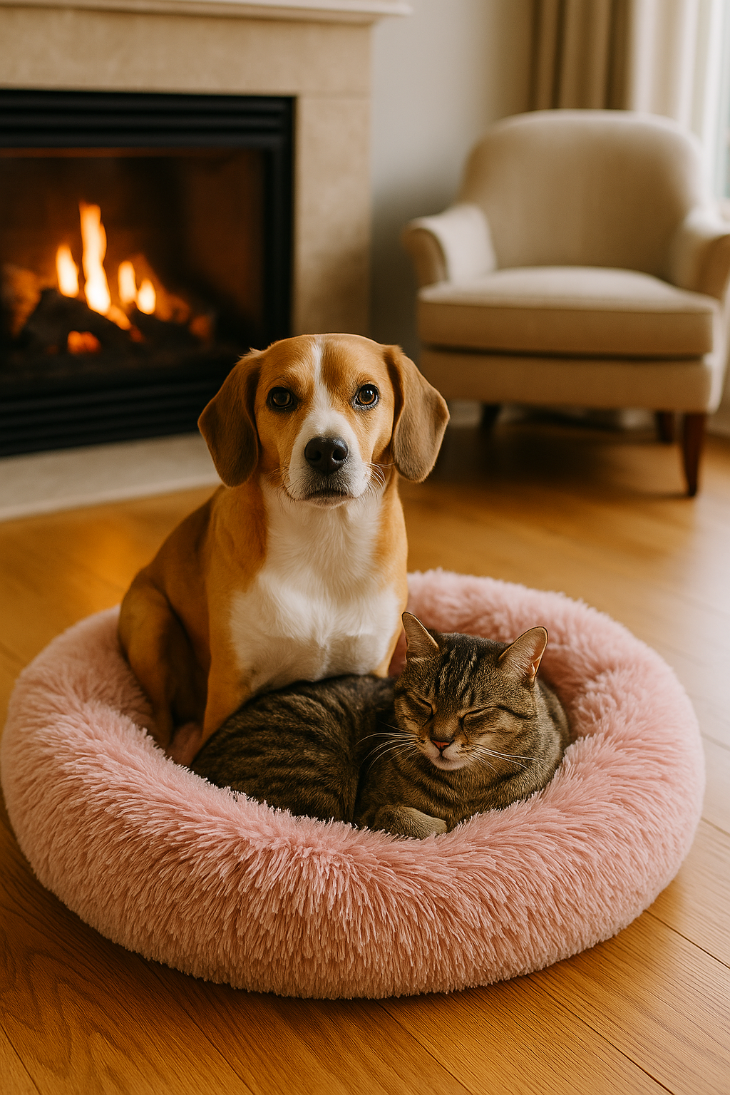 This cozy plush pet bed brings dogs and cats together in perfect harmony